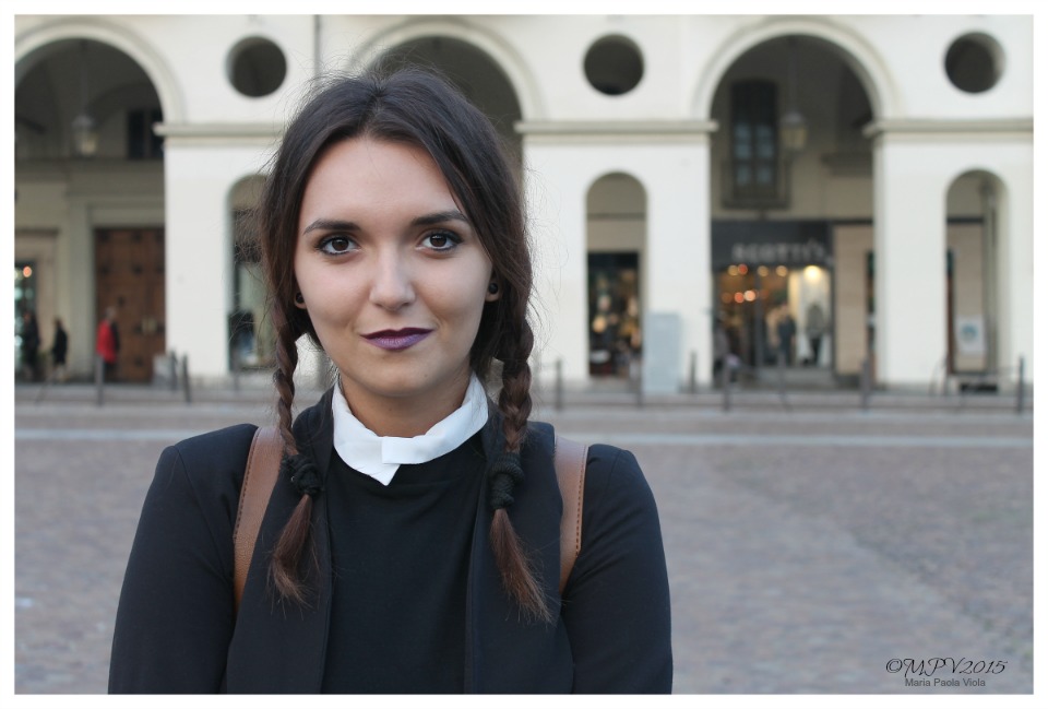Mi hanno colpita le sue treccine, il suo rossetto viola, il suo modo di vestire semplice ed ordinato.
