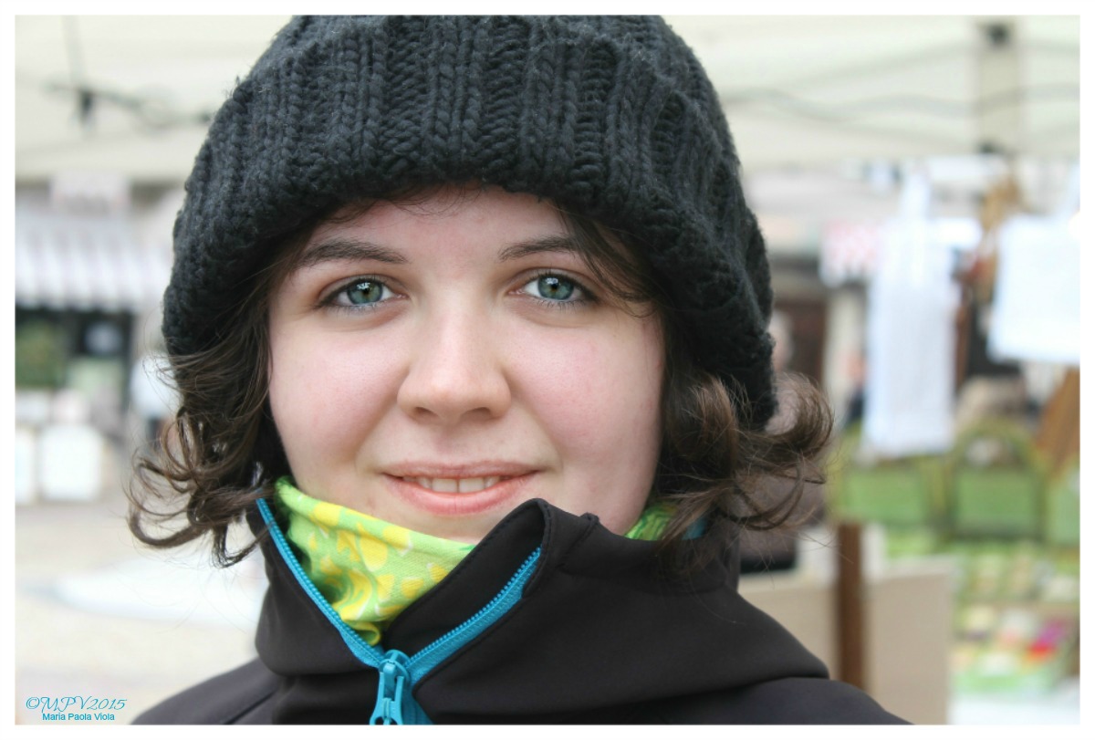 Tanta gente, visi anonimi, primi freddi autunnali. Davanti a me un berrettino di lana di colore nero si muove fra la folla, a stento riesce a coprire bei riccioli, è una giovane ragazza quella che si volta, bellissimi occhi in un viso che ispira subito simpatia.